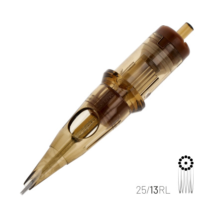 De 0,25 mm (#8) naalden zijn zeer dicht op elkaar geplaatst, wat resulteert in een gecontroleerde, tragere inktflow. Daarnaast is deze cartridge een uitstekende keuze voor werk dat wordt uitgevoerd met de Dot Work-techniek.
